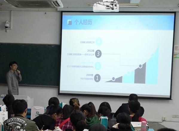房永兴经理通过播放宣传视频和PPT讲解等方式让同学们了解了无锡通善口腔医院的规模、团队力量等情况,同时表示,无锡通善口腔医院愿意为m88官网口腔医学专业的员工提供实习就业的条件和机会。就同学们关心的就业等问题,房永兴也作了详细解答,气氛热烈,秩序井然