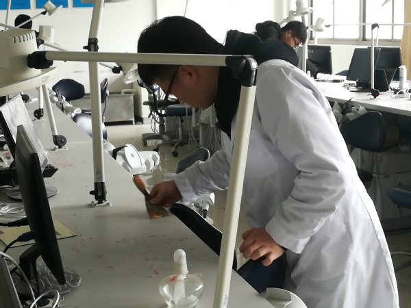 清扫口腔实验中心,服务大家。3月15日下午,16级的三十名同学来到3号实验楼对口腔医学实验中心开展清扫活动,分配了任务之后同学们便立即如火如荼开展了四间大教室的“大扫除”。不过一会功夫,台面、地上的灰尘,桌面凝集的蜡块碎渣,地板踩过的脚印,都被清除得干干净净,同学们用他们义务的劳动为本专业的实验课的有序开展提供了更良好的教室环境。