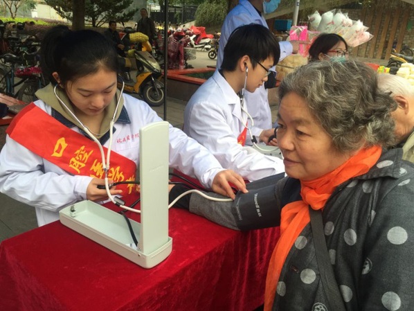 义诊当天,m88“一米阳光”志愿者服务队的同学们热情解答每一位前来咨询的居民。运用自己所学的知识,为前来咨询的市民作口腔检查、测量血压,并为他们普及口腔健康知识。志愿者们细心的检查、仔细的嘱托赢得了居民们一致的赞赏。
