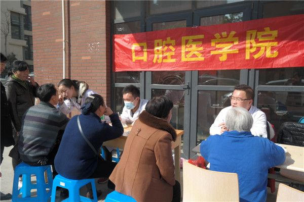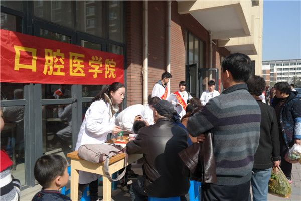 社区义诊,诠释雷锋精神 3月16日上午,口腔4班团支部与部分团委员工会成员来到中央城社区,为社区居民进行义务口腔检查与咨询。过程中,志愿者们一边分发口腔健康宣传单,一边引导社区居民到义诊处咨询,受到了广大居民的一致好评。