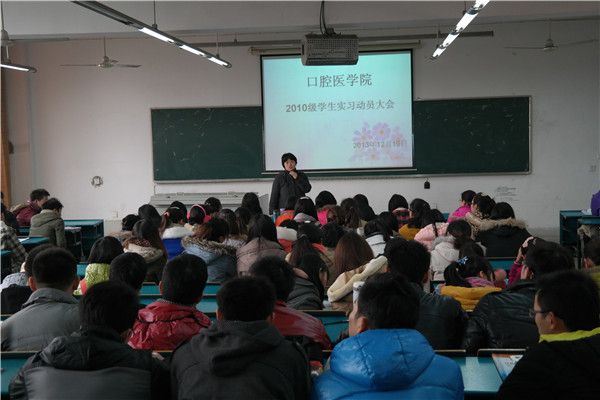 随后,公司党总支书记柴琳老师对即将走向实习岗位的148名员工进行了实习前的动员。她分别从实习过程中的学习、生活及安全等方面进行了动员,并要求所有同学遵守实习医院的规章制度,尊敬带教老师,勤奋学习、踏实做事,争取在实习结束后都有满满的收获。 大会在各位老师的祝福声中圆满结束,自此,2010级口腔专业的全体同学正整装待发,踏上实习这个新的征程。