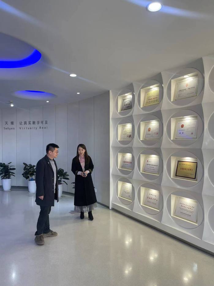 天堰科技公司董事长刘霄飞、市场总监马英达热情接待了邓超一行,并详细介绍了公司发展历程、产品信息、平台建设、项目研究、成果转化等方面的成效。双方就智慧实验室建设、口腔执业医师技能考试、虚拟仿真系统教学、产学研项目联合申报等多方面进行了深入交流,并共同参观了公司展馆和环境。