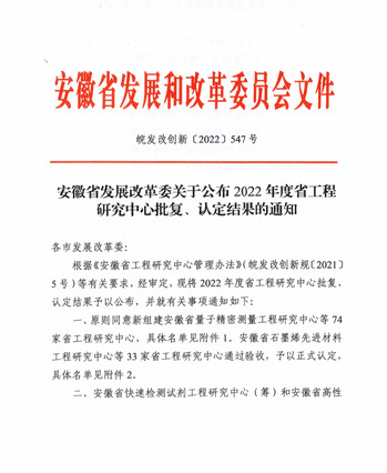 安徽省工程研究中心是根据《国家工程研究中心管理办法》(国家发展改革委令第34号),结合我省实际制定的,是构建企业为主体、市场为导向、产学研深度融合的技术创新体系重要力量。旨在推动产业关键共性技术、前沿引领技术、现代工程技术、颠覆性技术的创新,加快科研成果向现实生产力转化,促进产业基础高级化和产业链现代化,为打造具有重要影响力的科技创新策源地提供重要保障。公司将依托该研发平台,积极申报横纵向课题,有效开展科技创新研发工作,加强校企合作,促进产学研进一步融合,加速科技成果转化应用,为地区及安徽省经济、科技发展做出贡献。