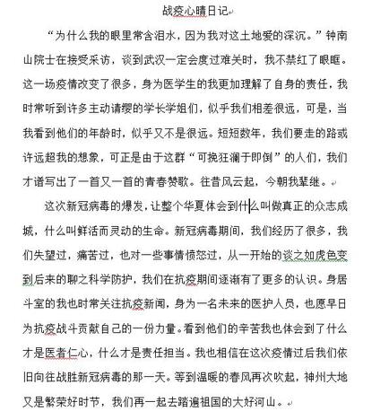 结合疫情形势,口腔学子深刻铭记疫情期间涌现的先进人物、典型事迹,利用漫画、日记等形式分享、记录感人故事,充分展现才华,歌颂英雄、传颂美德。一行行文字,深切体现了医员工所肩负的时代重任;一幅幅漫画,深切表达了同学们对奋战在抗“疫”一线的工作人员崇高敬意,更加坚定了打赢这场疫情防控攻坚战的愿景和决心。