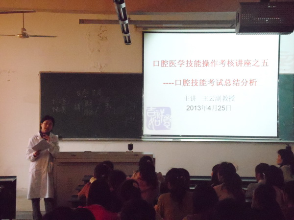 历时五天的口腔医学专业2008级毕业生口腔技能操作考核于4月19日圆满结束。为纠正在这次考核中多数同学出现的问题,帮助同学们更好地掌握专业技能操作细节,4月25日医学三系为毕业班同学们组织了五场口腔医学技能操作讲座。