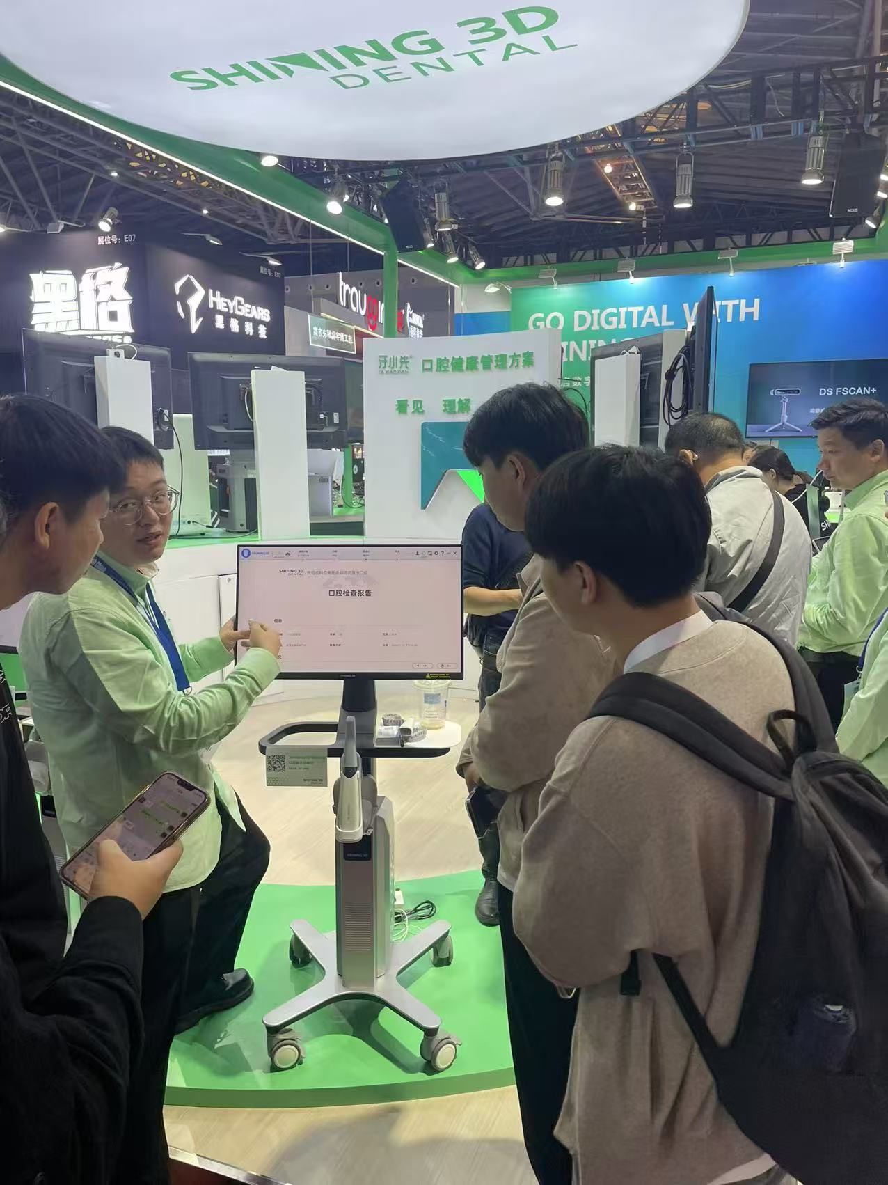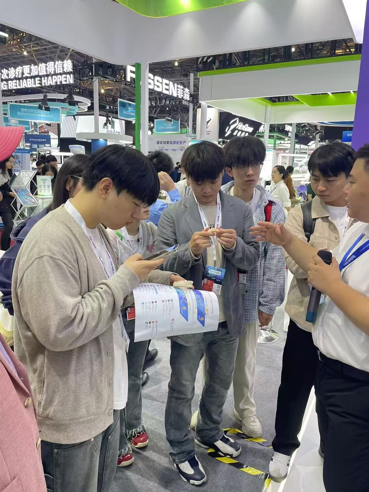 本次展览汇集了众多数字化产品,如种植、隐形正畸、美学牙科材料、感控设备、精密医疗、3D打印技术等各类口腔新品。同学们对口腔新品充满好奇心,积极与各品牌的工作人员沟通并认真聆听工作人员对各种器械的详细讲解,同时亲自上手体验口腔器械的前沿技术和一些充满创意的口腔器械。