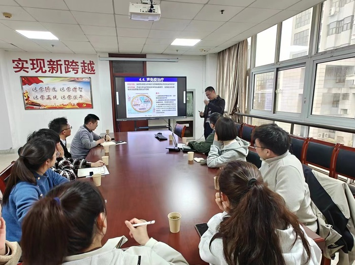 范文培教授为公司师生开展了题为“半导体有机硅:光学影像与递药系统的交叉融合”的报告,详细介绍了其自博士开始的研究工作:以硅基材料为骨架,构建了具备不同功能性的有机硅纳米颗粒,赋予了该颗粒光声响应性、pH响应性等特性,具备了良好的靶向、可控药物释放的能力,在光热控释化疗、光免疫治疗、抗炎抗菌、骨修复等领域中,有着出色的应用前景。各位博士教师也介绍了自己的研究方向和研究进展,范教授就研究中的困惑及难点进行了深度指导,与会成员在与范教授交流后收获良多。