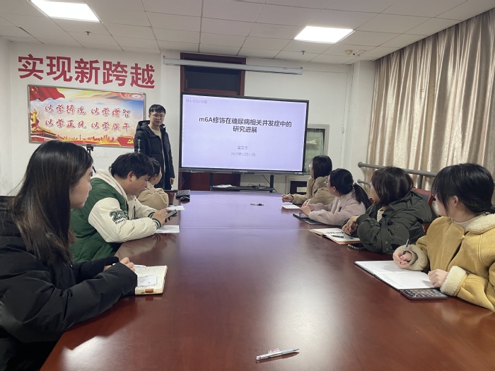 温文杰博士以“m6A修饰在糖尿病相关并发症中的研究进展”为题进行了学术报告。他从m6A修饰的意义展开,结合自身工作,详细介绍了糖尿病肾脏疾病中m6A修饰的研究进展,并进一步展望了m6A修饰在口腔疾病中的研究意义。整场报告内容丰富、精彩生动,汇报后师生展开热烈讨论,现场氛围活跃。