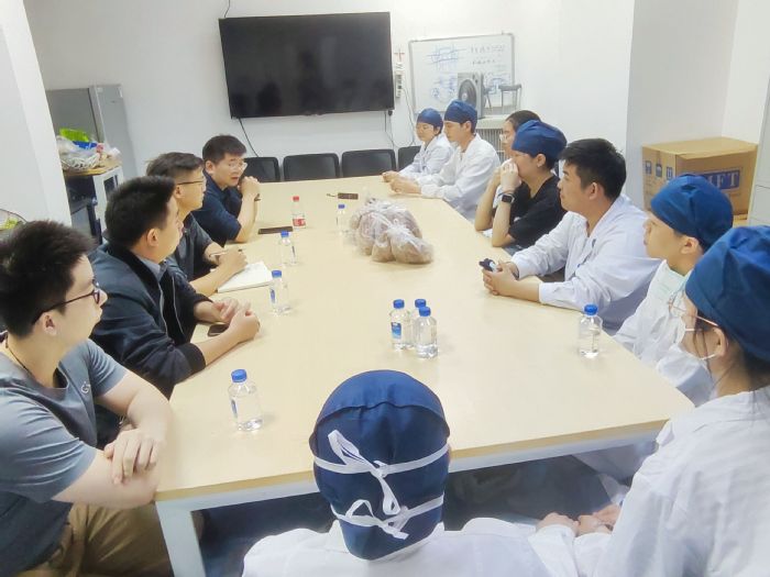 会后,邓超看望了在医院实习的员工,详细了解员工的思想动态、学习和生活情况,引导考研同学协调好考研和实习之间的关系。