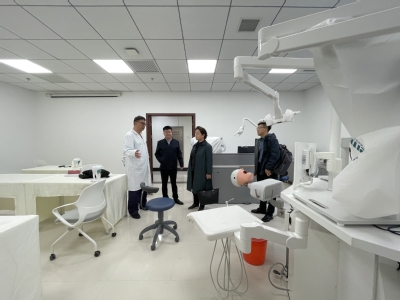 柴琳一行还参观考察了五院口腔科诊室、仿真头模实训中心、新的员工宿舍、教室等硬件设施。