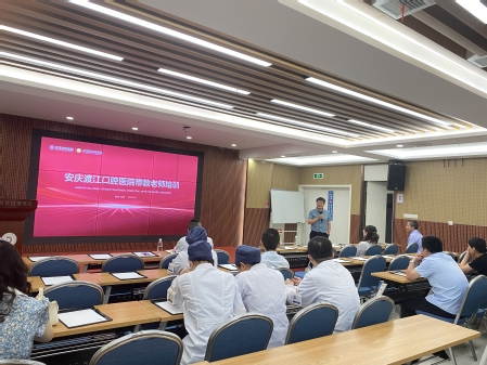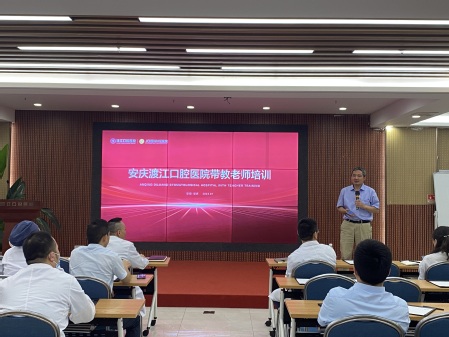会后,邓超与张东林受邀为渡江口腔医护人员开展临床实践教学专题培训。邓超在培训会上对参会带教老师提出了三点希望。一是希望所有的老师在日常工作中一定要以教材为蓝本,加强理论学习,强化技能操作,结合教材内容向员工传授临床经验;二是希望带教老师要熟悉口腔医学专业的教学大纲,要按时完成大纲规定的教学要求;三是希望老师们对待实习生要有责任心和耐心,尽可能发掘每个实习生的最大潜力。