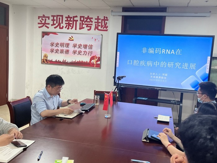 邓超博士以“非编码RNA在口腔相关疾病中的研究进展”为题进行学术报告,介绍了非编码RNA的分类及其功能,非编码RNA在口腔多种疾病中的研究进展,同时结合自己在研的circRNA调控口腔鳞状细胞癌的发生发展方面的研究,细心分享了研究思路、方法技术、目前的研究成果及未来面临的挑战和机遇。整场报告思路清晰、精彩生动,师生讨论热烈,交流融洽。