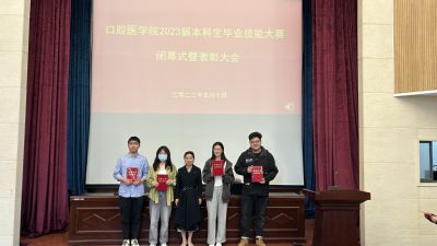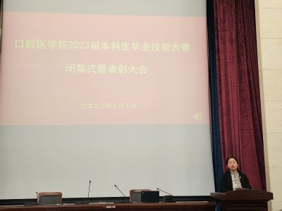 闭幕式于11日上午举行在逸夫科技楼报告厅举行,教务处黄月娥处长、年四辉副处长、公司领导专家出席并颁奖。闭幕式上,教务处处长黄月娥做总结讲话。她对参赛选手提出两点希望:一是要牢牢掌握口腔医学专业理论知识与实践技能,在以后的工作岗位上充分展现m88官网学子风采,为母校增光添彩;二是要树立正确的就业观、择业观,要充分认识到口腔医学专业特殊性,注重实践技能的培养。