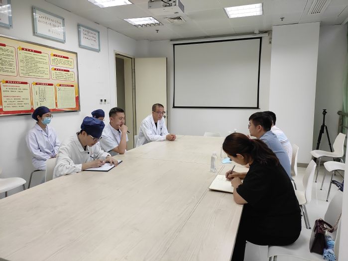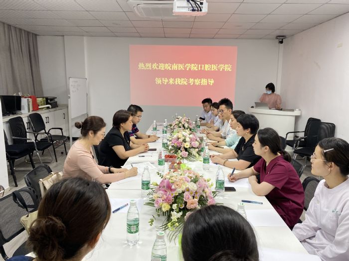 6月17日下午,邓超、张晋艳、余其柱一行来到中国人民解放军联勤保障部队第904医院,与口腔科主任陆伟、实习带教老师薛陈峰、实习员工进行了座谈。座谈时,双方交流了实习教学实施、带教管理、员工实习生活等情况,就开展客座教授聘用、员工培养、考研与实习的时间管理等方面进行了深入交流。