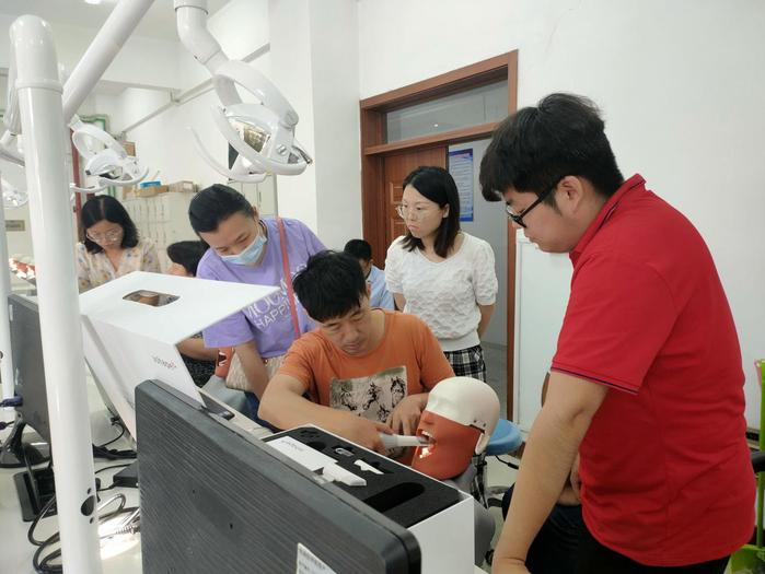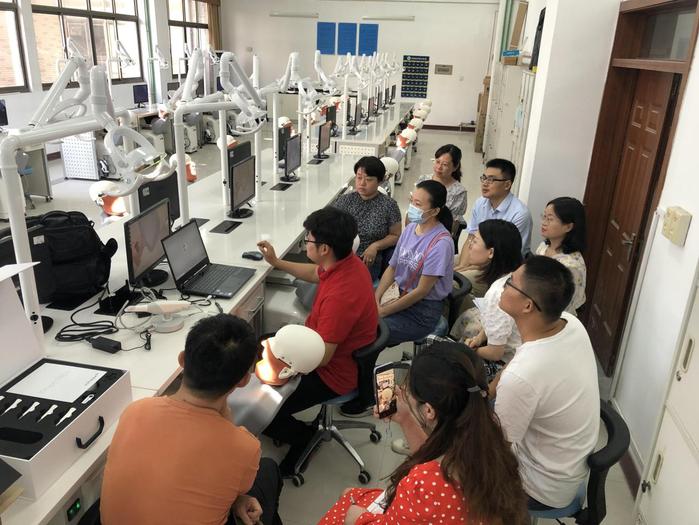 随后,老师们在相关工程师的带领下,进行了口腔设备和仪器的培训,学习了它们的原理与操作程序,培训气氛热烈、秩序井然,大家认真聆听讲解,仔细观察、踊跃提问、积极交流,留心每个操作细节,本次的培训为实验技能的提高和实验授课新模式的开拓奠定了基础。