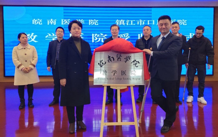 顾红政致欢迎辞。吴金月代表公司对镇江市口腔医院正式成为公司教学医院表示祝贺,对医经理期以来对公司教学工作的支持表示感谢。吴金月指出,一直以来公司高度重视人才培养工作,牢牢坚持立德树人根本任务,不断深化医学教育改革,努力培养高素质创新性应用型人才。此次与医院建立合作关系,也是公司深化改革开放、强化内涵建设、主动融入长三角一体化高质量发展的重要举措。希望双方以授牌仪式为新的起点,本着“优势互补、资源共享、互惠双赢、共同发展”的原则,围绕医疗、教学、科研、人才培养等开展全方位合作,努力实现双方同鸣共振、协同发展的双赢局面。