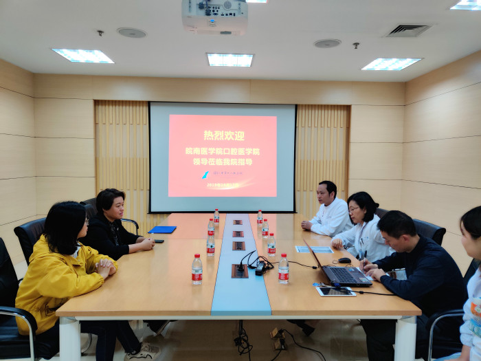 10月17日上午,柴琳一行人前往镇江市第一人民医院进行考察与交流。医院教务科及口腔科负责人介绍了镇江市第一人民医院的发展规划、医师队伍、带教经历、科室医疗设备、员工生活设施安排等情况,双方沟通交流达成了合作意向。
