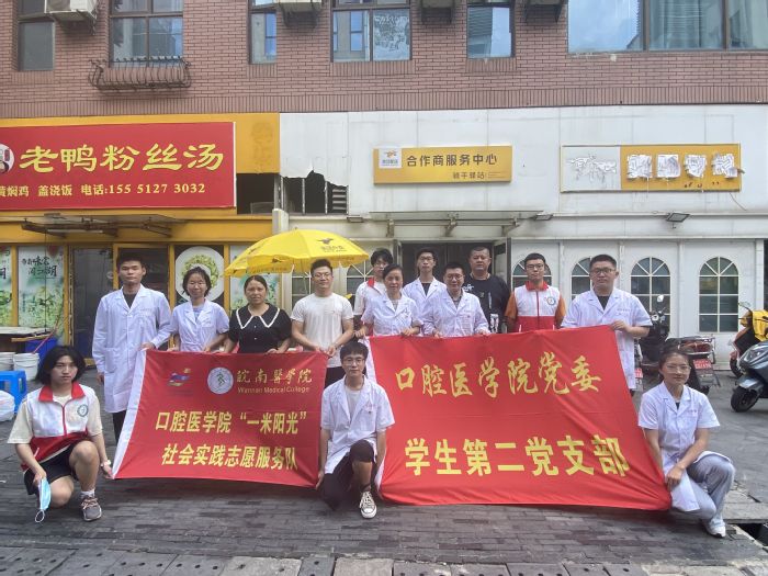 8月5日,团队邀请口腔专业老师一同走进美团外卖小哥的日常,开展“服务小黄”义诊活动。在中央城社区美团驿站,实践团首先对外卖小哥进行了为慰问,为他们送上了牙膏、牙刷、牙线等慰问品以感谢他们挺身在一线为大家服务。同时积极向他们及周围居民宣传普及口腔保健知识。义诊过程中,团队成员为外卖小哥开展了口腔卫生检查和血压测量,并解答了相关口腔卫生问题。