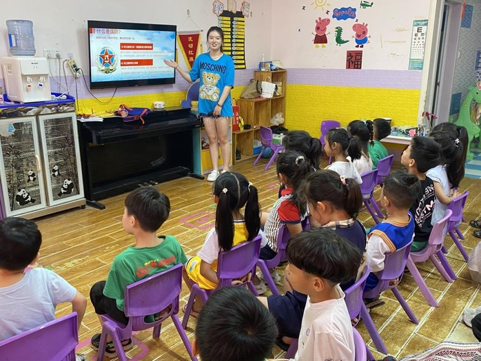 为认真贯彻落实“双减”政策,提升公司课后服务水平,满足员工多样化需求,达到“减负增效”目的。志愿者们特意为当地小朋友们准备了趣味课堂、健康大课间、科学小实验、趣味科普等活动,做到“减负不减质,提能还增效”,志愿者们通过游戏的方式生动有趣的的开展疫情防控和国防知识科普,使孩子们能够在感受快乐的同时也能学习很多知识,得到小朋友们的欢迎和认可。
