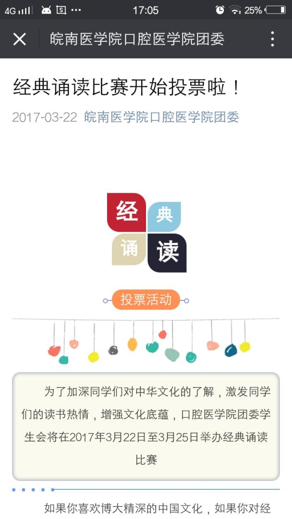 诵国学经典,品盛世文明。为丰富校园文化生活,加深老员工对中国文化的了解,同时增强员工自身的人文修养,m88团委于2017年3月22日至3月25日开展了以“诵读经典 传承文化”为主题的经典诵读活动。本次活动分为两个阶段:微信线上投票、现场朗诵。公司2014级、2015级、2016级同学积极参与。