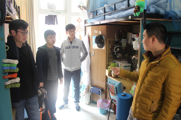 本次春季寝室安全卫生检查重点在于查找寝室是否存在使用大功率电器现象,是否有安全隐患。查寝过程中,带队老师提醒同学们寝室内切勿使用大功率电器,保持寝室内的干净整洁,预防春季传染病的发生,并询问了同学们在宿舍中的生活及学习情况,指出寝室中存在的不良现象并要求及时整改。对于环境良好、干净整洁的寝室,要继续保持。