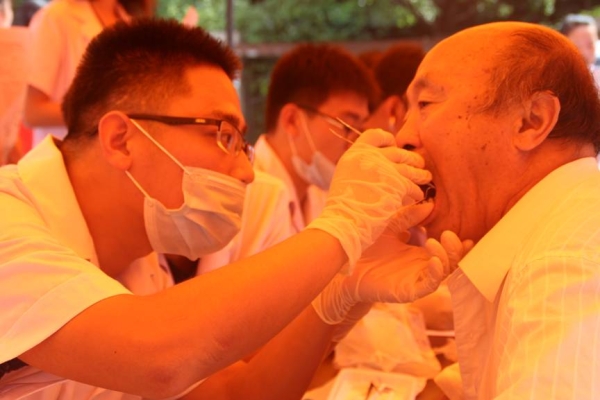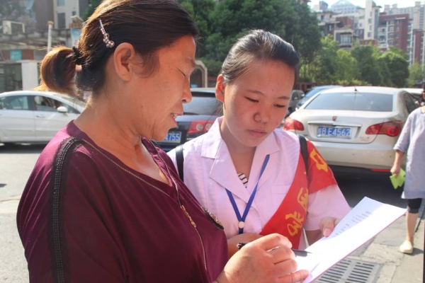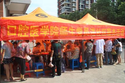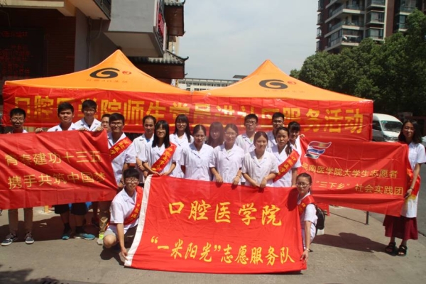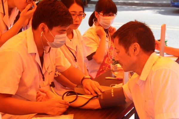 8月30日,m88师生党员及“一米阳光”实践团来到了芜湖市弋江区中央城街道,对当地居民进行爱心义诊,此次义诊活动包括血压测量、口腔健康检查、口腔卫生保健宣传、口腔保健示范等。在口腔教工党员张晋艳、张翼和张娜老师的带领下,团队成员分工明确,各自坚守岗位,轻松化解了街道百姓年龄跨度大,口腔疾病复杂等一系列问题。义诊过程中,队员们热情细心的服务态度得到了当地居民一致好评。