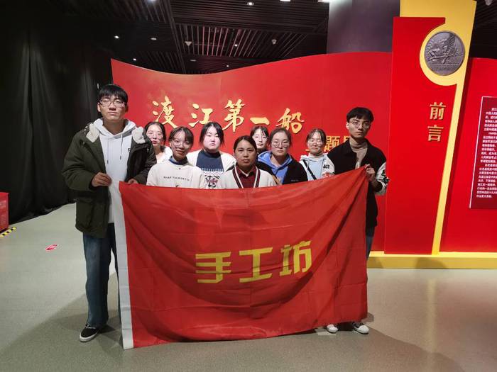 手工坊指导老师张晋艳带领社团骨干到芜湖市博物馆参观,传承红色基因,弘扬革命精神。重点参观了博物馆馆藏文物,并与社干们进行交流,如何在社团活动、日常教学中将非物质文化遗产与社团活动更好融合,提高同学们对非物质文化遗产保护意识,传承和弘扬中华优秀传统文化。