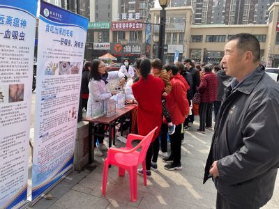 尘螨是诱发哮喘、过敏性鼻炎和湿疹等过敏性疾病的重要变应原。基础医公司党委医学寄生虫学党支部在支部书记湛孝东带领下,教师党员共6人为中央城社区居民开展了血压、血糖的测量,并耐心解答居民提出的相关健康问题。利用现场宣讲和展板展示的形式宣传了看不见的过敏原--尘螨和血吸虫、肝吸虫、肺吸虫等重要寄生虫的危害和防治方法,展示了各种寄生虫的生活史,便于居民更好地理解寄生虫相关知识,指导居民科学防治。