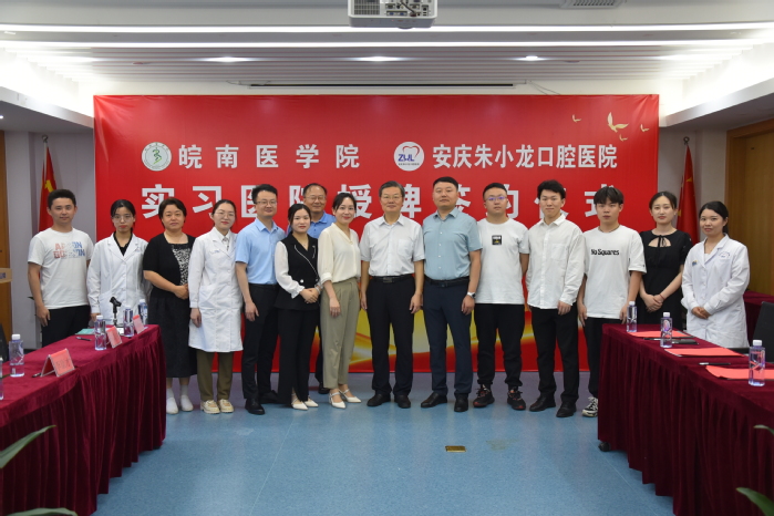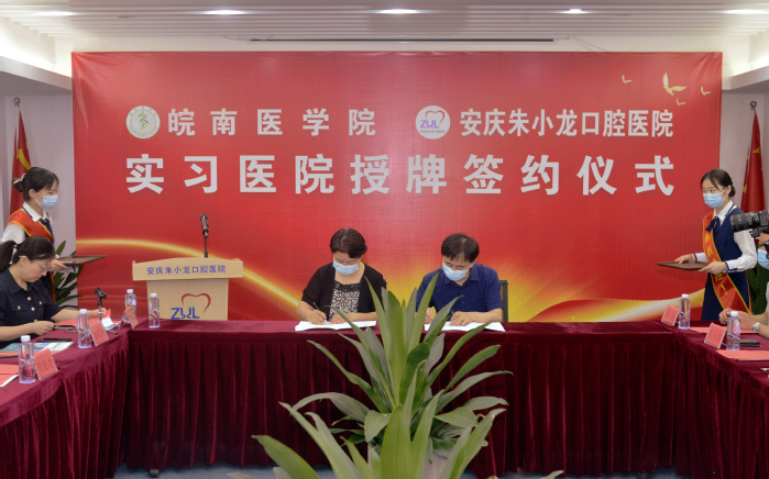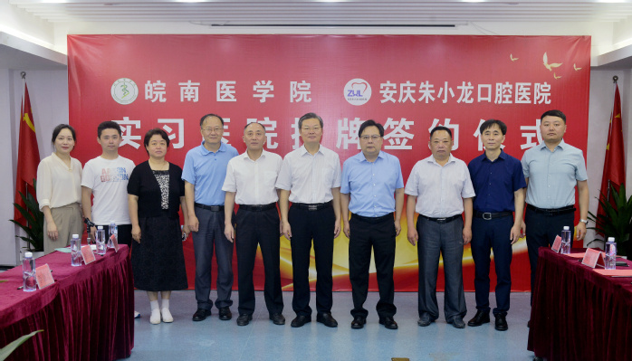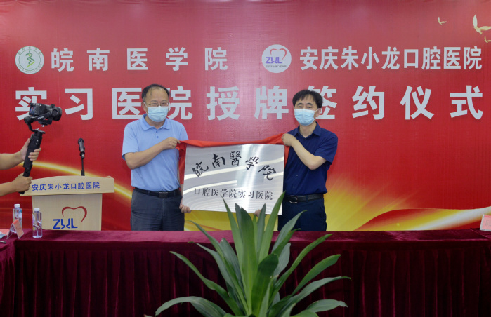 2022年6月11日上午,公司党委副书记吴金月带领m88赴安庆市与安庆朱小龙口腔医院举行实习基地授牌仪式并走访安庆市就业单位。皖南医公司党委副书记吴金月、安庆市经开区党工委书记、管委会主任主任张剑、安庆市卫健委主任潘结标、安庆市宜秀区政协主席汪龙生、安庆市经开区社会事业发展局局长朱婷婷、朱小龙口腔医院经理朱小龙、公司公司党政领导、口腔医院科室负责人及实习生代表等30余人参加了授牌仪式。