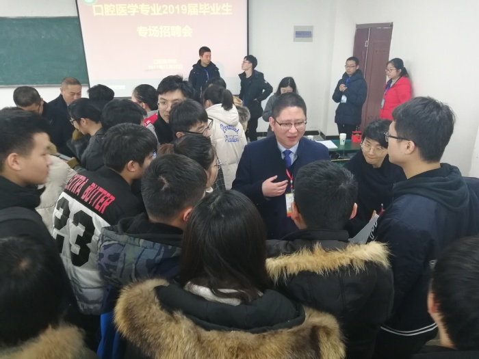 12月25日上午9点,m882019届毕业生口腔医学专业专场招聘会在滨江校区逸夫楼3101教室举行。公司党委书记柴琳,党委副书记张琪琪及部分口腔医学专业毕业生参加了此次招聘会。招聘会由毕业班辅导员吕晓飞主持。