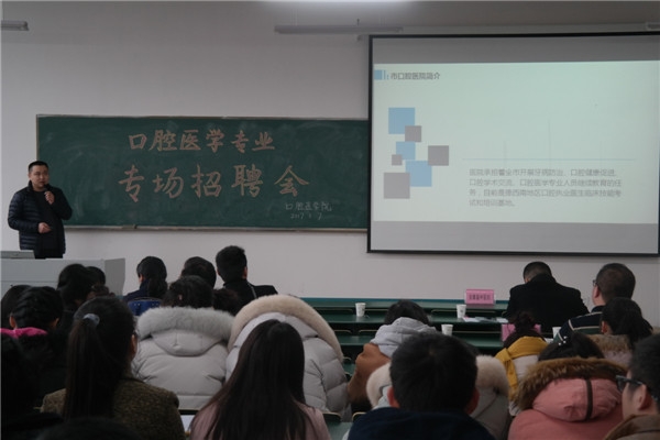 1月7日上午,m882017届口腔医学专业专场招聘会在滨江校区逸夫科技楼3104教室举行。公司党总支书记柴琳、秘书、辅导员及部分口腔专业毕业生参加了此次招聘会。