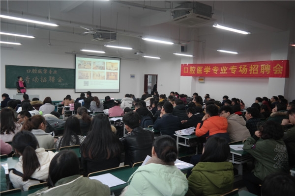 参加本次专场招聘会的有安庆朱小龙口腔医院、金寨县中医院、六安竹子口腔医院有限公司、平顶山市公司第二附属医院、巢湖世佳口腔医院、皖江口腔医院、合肥美奥口腔医院、天使口腔(集团)有限公司等8家单位,共提供本科生就业岗位70余个。