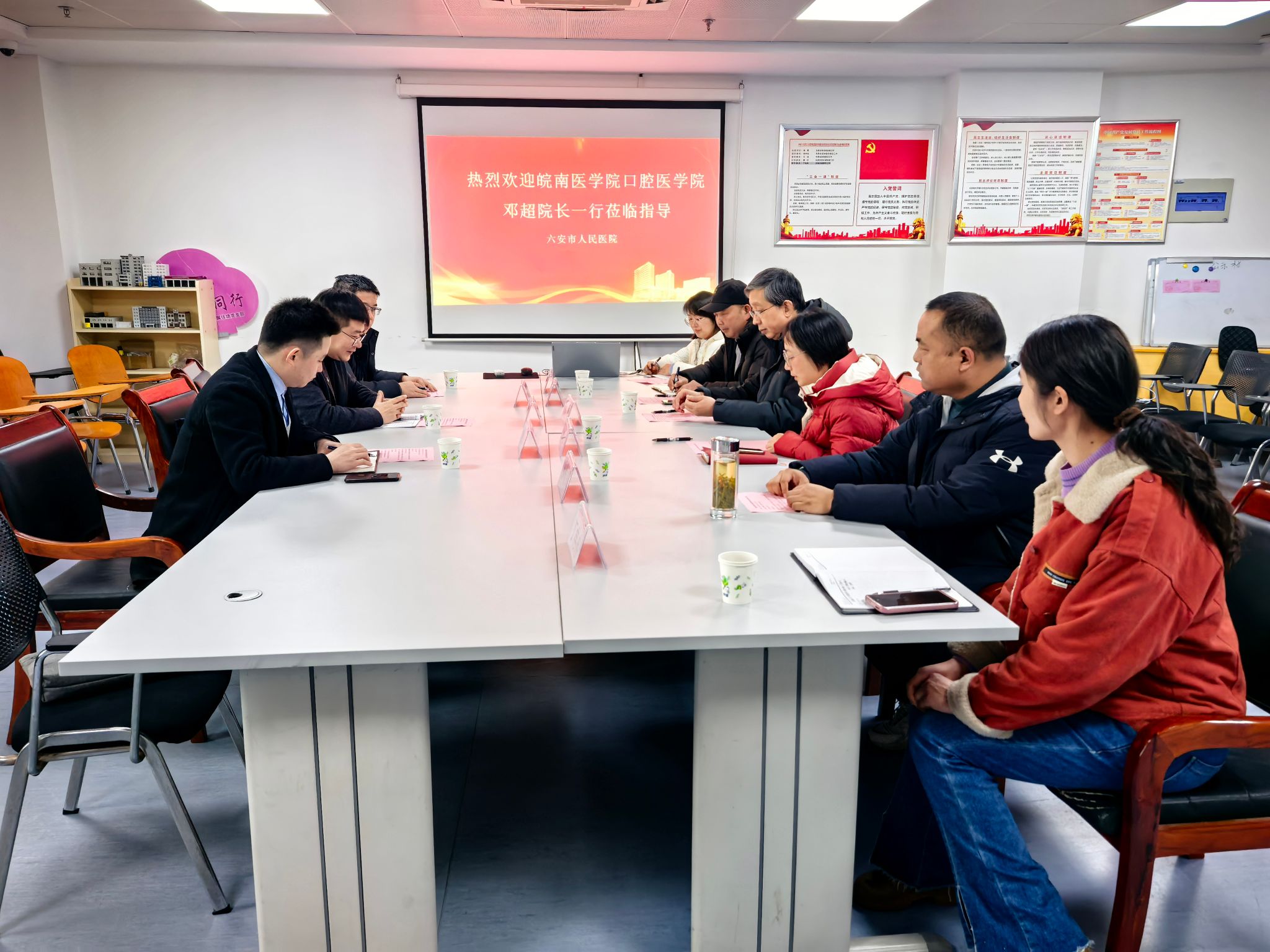 赵勇介绍了六安市人民医院的发展历史,以及近年来在临床专科建设、医疗团队、科学研究等方面取得的成绩。江长军介绍了口腔科的医疗、教学等工作开展情况,围绕口腔医学人才培养、课程体系构建、临床实践教学、科研合作进行交流。邓超对六安市人民医院的热情接待表示感谢,介绍了公司的发展历史和m88的发展情况、人才培养、特色亮点工作等。